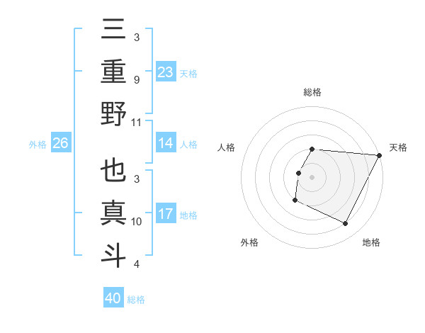 三重野 也真斗さんの天格は23画の5点!