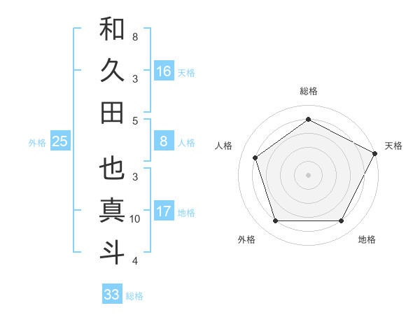和久田 也真斗さんを姓名の画数から五運を鑑定
