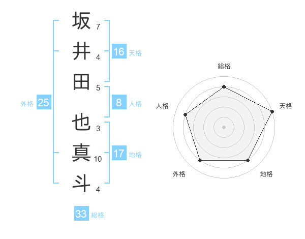 坂井田 也真斗さんの総格は33画の4点!