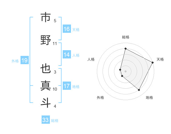 市野 也真斗さんの総格は33画の4点!