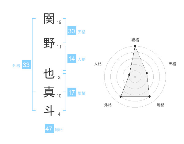 関野 也真斗さんを姓名の画数から五運を鑑定