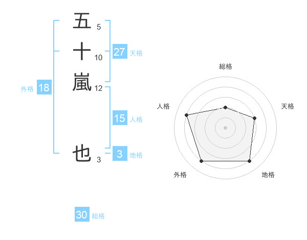 五十嵐 也さんの総格は30画の2点!