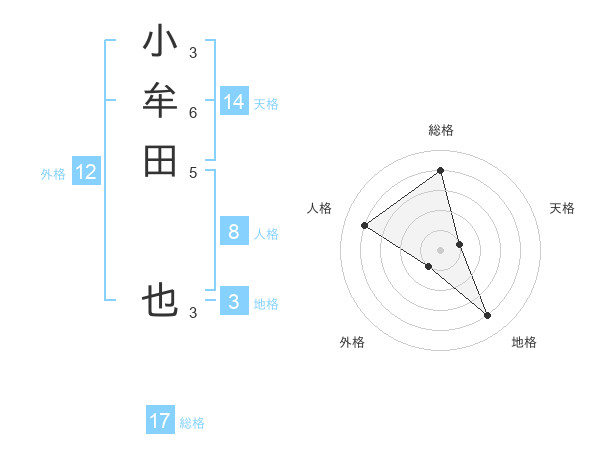小牟田 也さんの総格は17画の4点!