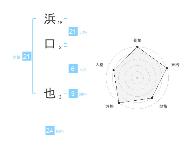 浜口 也さんの総格は24画の5点!