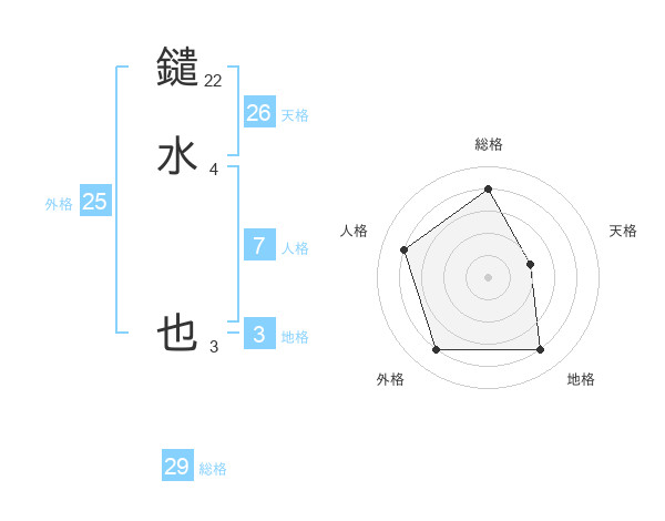 鑓水 也さんの総格は29画の4点!
