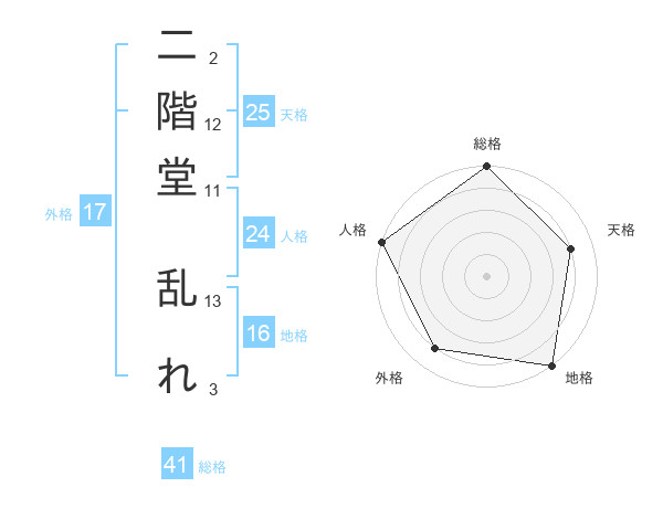 二階堂 乱れさんを姓名の画数から五運を鑑定