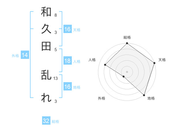 和久田 乱れさんを姓名の画数から五運を鑑定