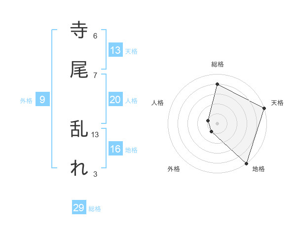 寺尾 乱れさんの総格は29画の4点!