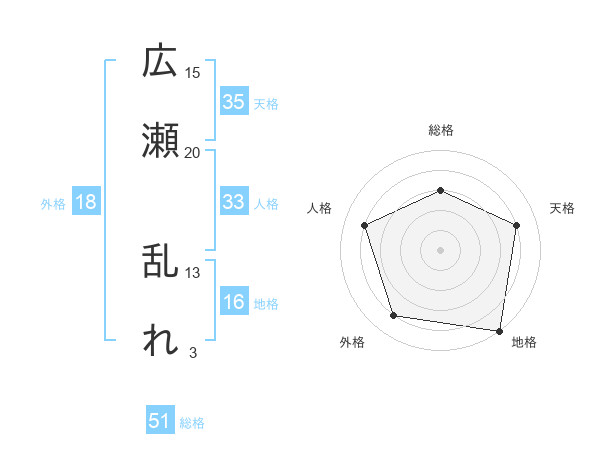 広瀬 乱れさんの総格は51画の3点!