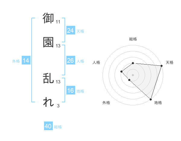 御園 乱れさんの地格は16画の5点!