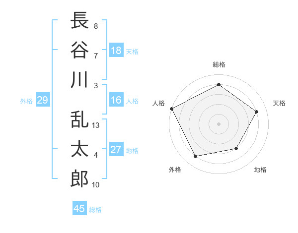長谷川 乱太郎さんの総格は45画の4点