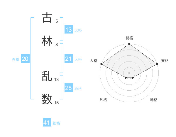 古林 乱数さんの総格は41画の5点!