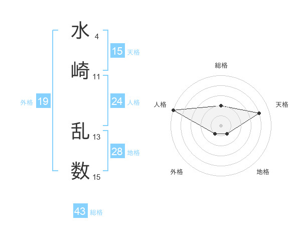 水崎 乱数さんを姓名の画数から五運を鑑定