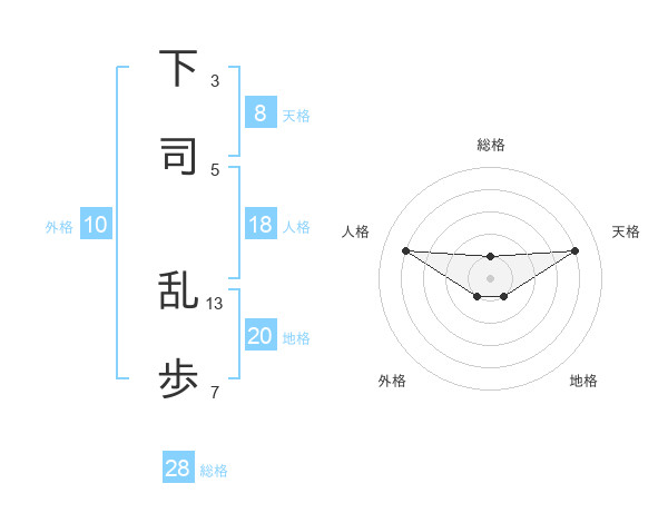 下司 乱歩さんの総格は28画の1点!