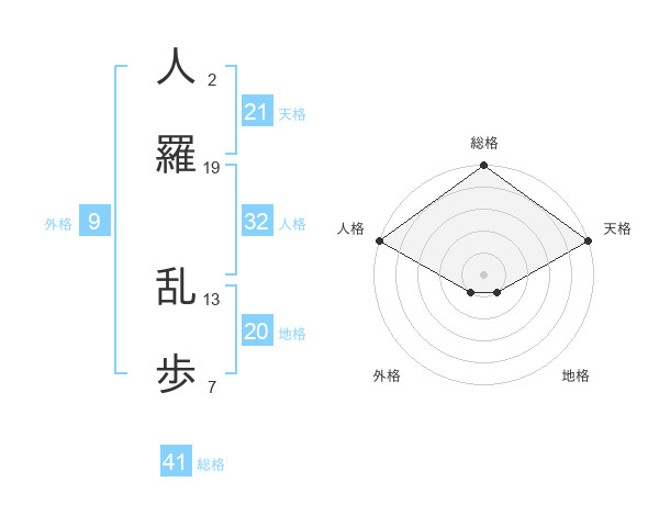 人羅 乱歩さんの天格は21画の5点!