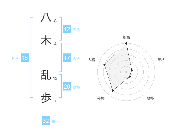 八木 乱歩さんの総格は32画の5点!