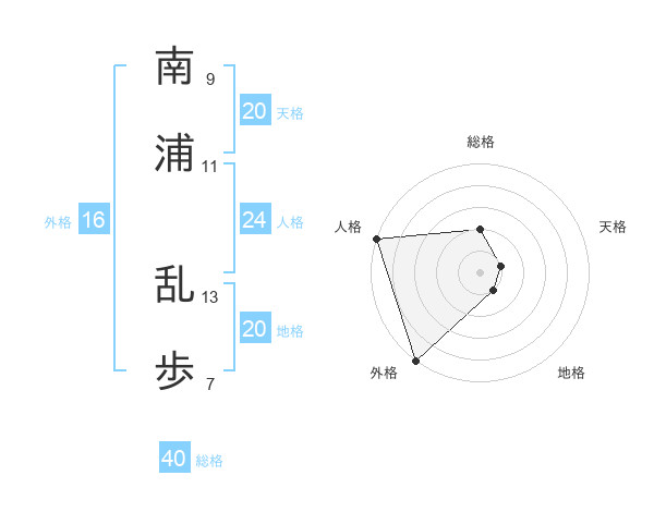 南浦 乱歩さんの地格は20画の1点!