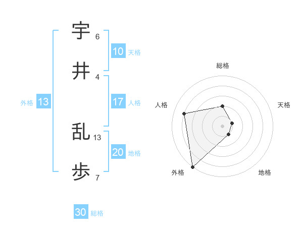 宇井 乱歩さんの外格は13画の5点!