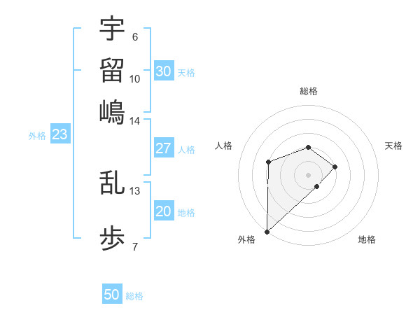 宇留嶋 乱歩さんを姓名の画数から五運を鑑定