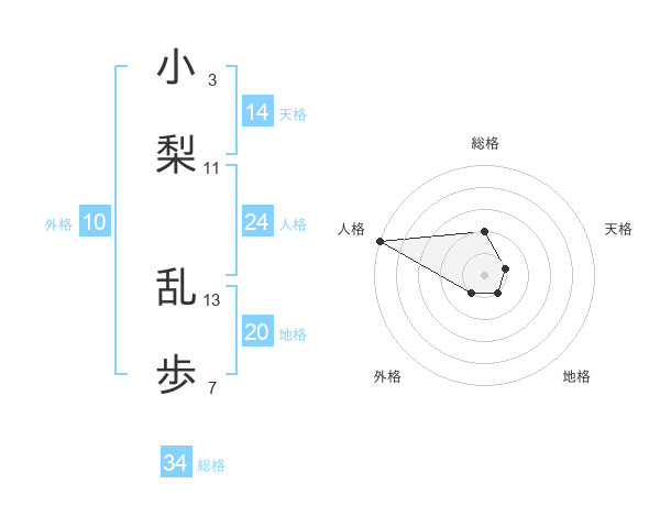 小梨 乱歩さんを姓名の画数から五運を鑑定