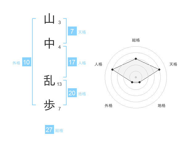 山中 乱歩さんを姓名の画数から五運を鑑定