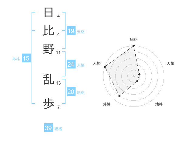 日比野 乱歩さんを姓名の画数から五運を鑑定