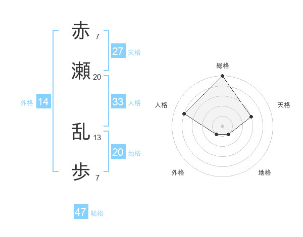 赤瀬 乱歩さんの総格は47画の5点!