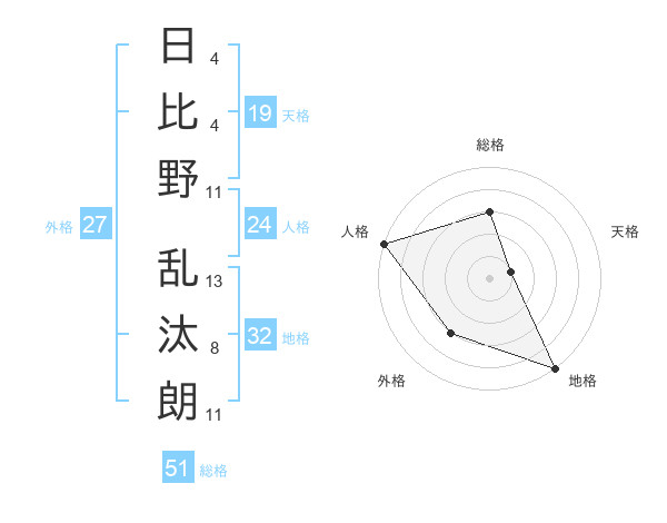 日比野 乱汰朗さんを姓名の画数から五運を鑑定