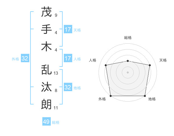 茂手木 乱汰朗さんを姓名の画数から五運を鑑定