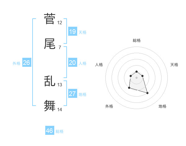 菅尾 乱舞さんの総格は46画の1点!