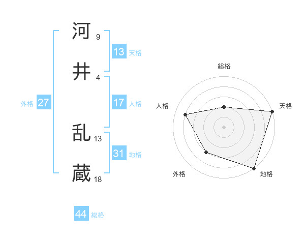 河井 乱蔵さんを姓名の画数から五運を鑑定