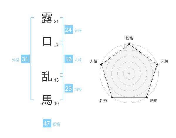 露口 乱馬さんを姓名の画数から五運を鑑定