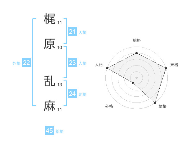 梶原 乱麻さんを姓名の画数から五運を鑑定