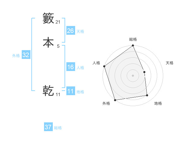 籔本 乾さんの総格は37画の5点!