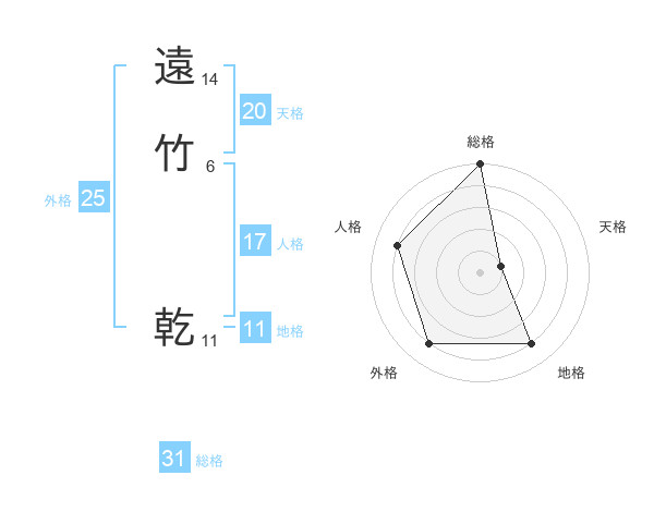 遠竹 乾さんの総格は31画の5点!