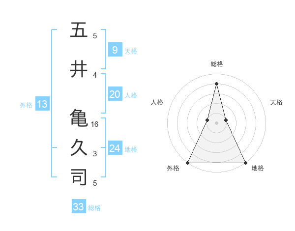 五井 亀久司さんを姓名の画数から五運を鑑定