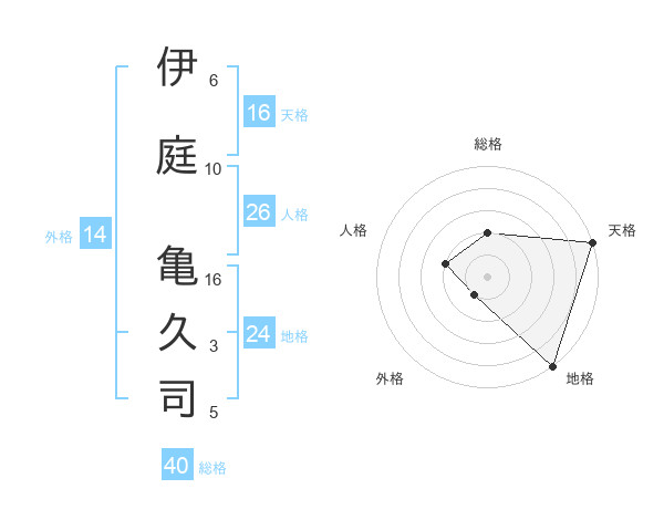 伊庭 亀久司さんの天格は16画の5点!