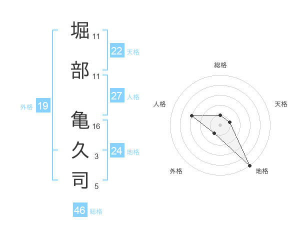 堀部 亀久司さんの天格は22画の1点!