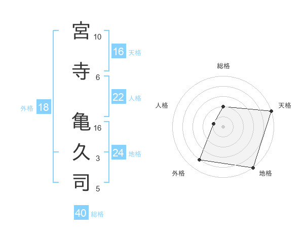 宮寺 亀久司さんの天格は16画の5点!