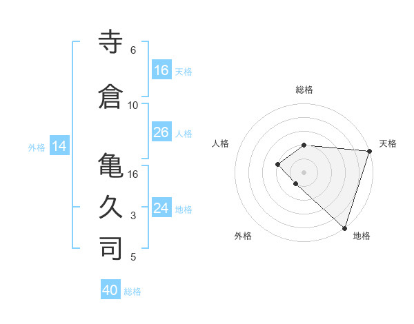 寺倉 亀久司さんの総格は40画の2点!