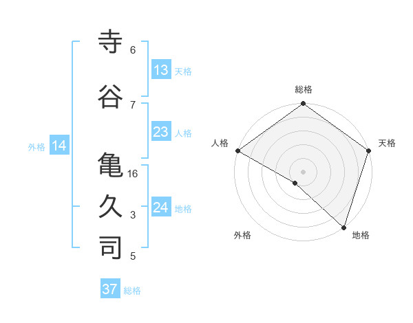 寺谷 亀久司さんを姓名の画数から五運を鑑定