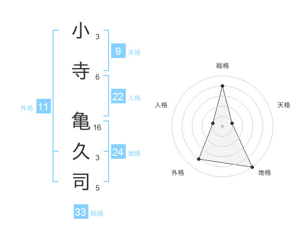 小寺 亀久司さんを姓名の画数から五運を鑑定