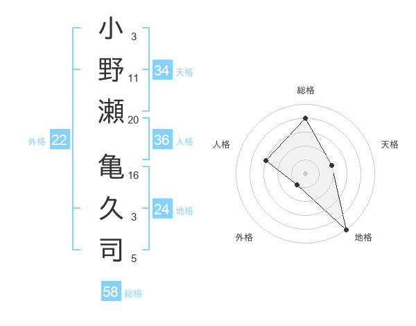 小野瀬 亀久司さんを姓名の画数から五運を鑑定