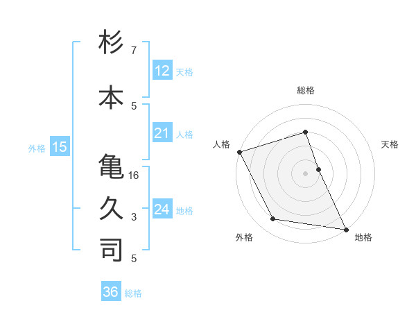 杉本 亀久司さんの地格は24画の5点!