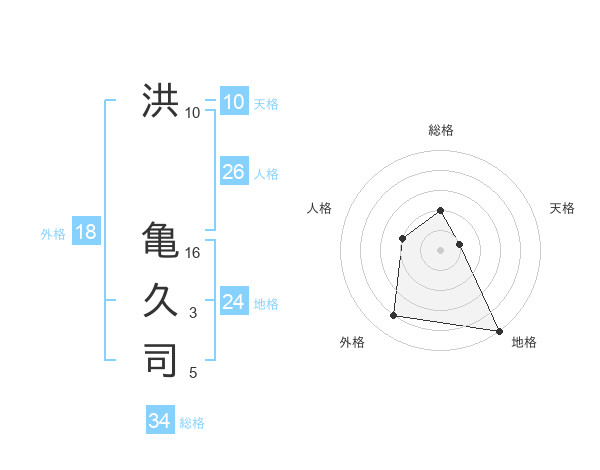 洪 亀久司さんを姓名の画数から五運を鑑定
