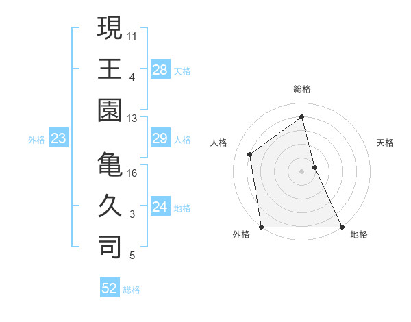 現王園 亀久司さんを姓名の画数から五運を鑑定