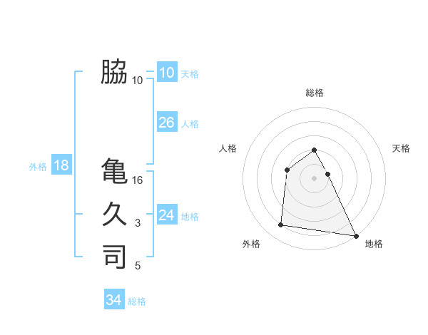 脇 亀久司さんの総格は34画の2点!
