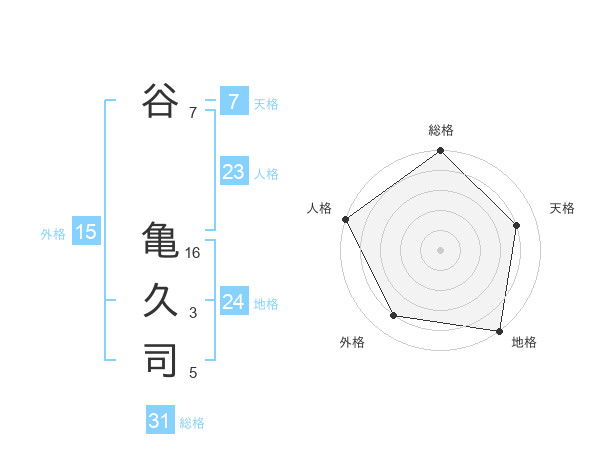谷 亀久司さんを姓名の画数から五運を鑑定
