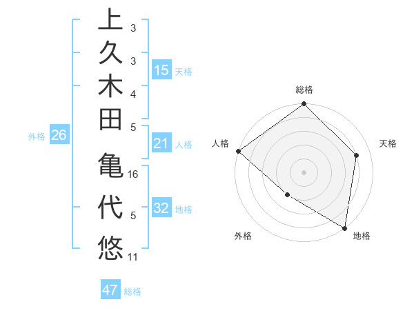上久木田 亀代悠さんを姓名の画数から五運を鑑定
