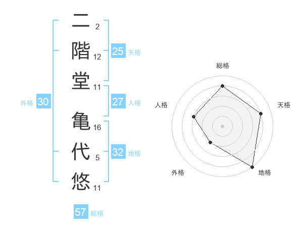 二階堂 亀代悠さんの総格は57画の4点!